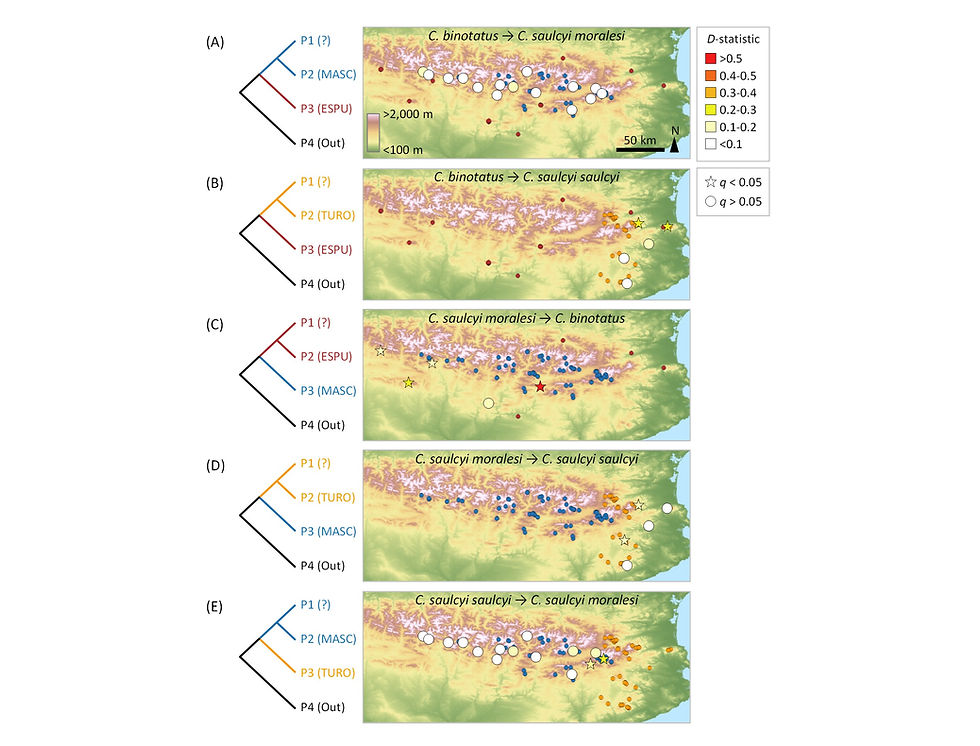 Tonzo V, Papadopoulou A, Ortego J (2020) Genomic footprints of an old affair: Single nucleotide polymorphism data reveal historical hybridization and the subsequent evolution of reproductive barriers in two recently diverged grasshoppers with partly overlapping distributions. Molecular Ecology, 29: 2254-2268. [PDF]